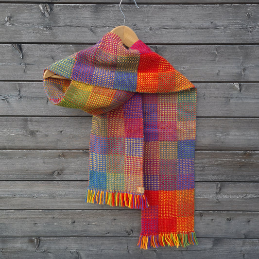 Handwoven Rainbow Double Weave Woollen Scarf - Merino and BFL