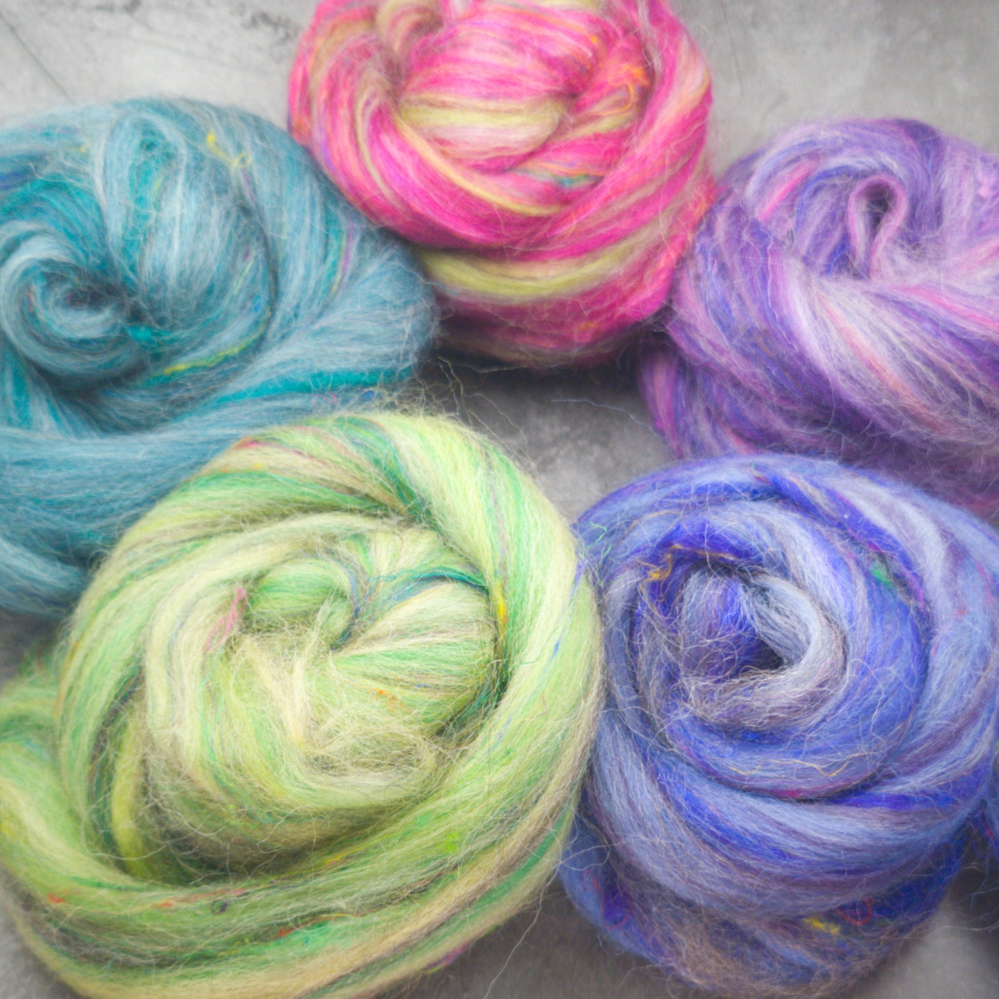 I bought a variety of wool tops, and they are all beautiful blends. I'm a total sucker for anything with a hint of hot pink. They felt really well so my stash is already depleting! So n9ce to find a local supplier with such nice products.