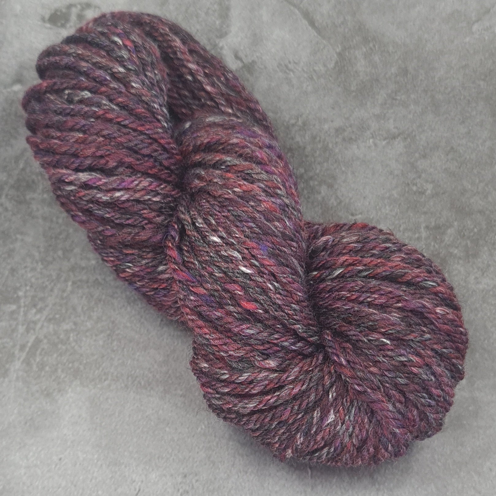 Dark Red, 27g, 41m (45 yds) 10 wpi Rich dark reds with a touch of plum and crimson blended with dark alpaca and white silk