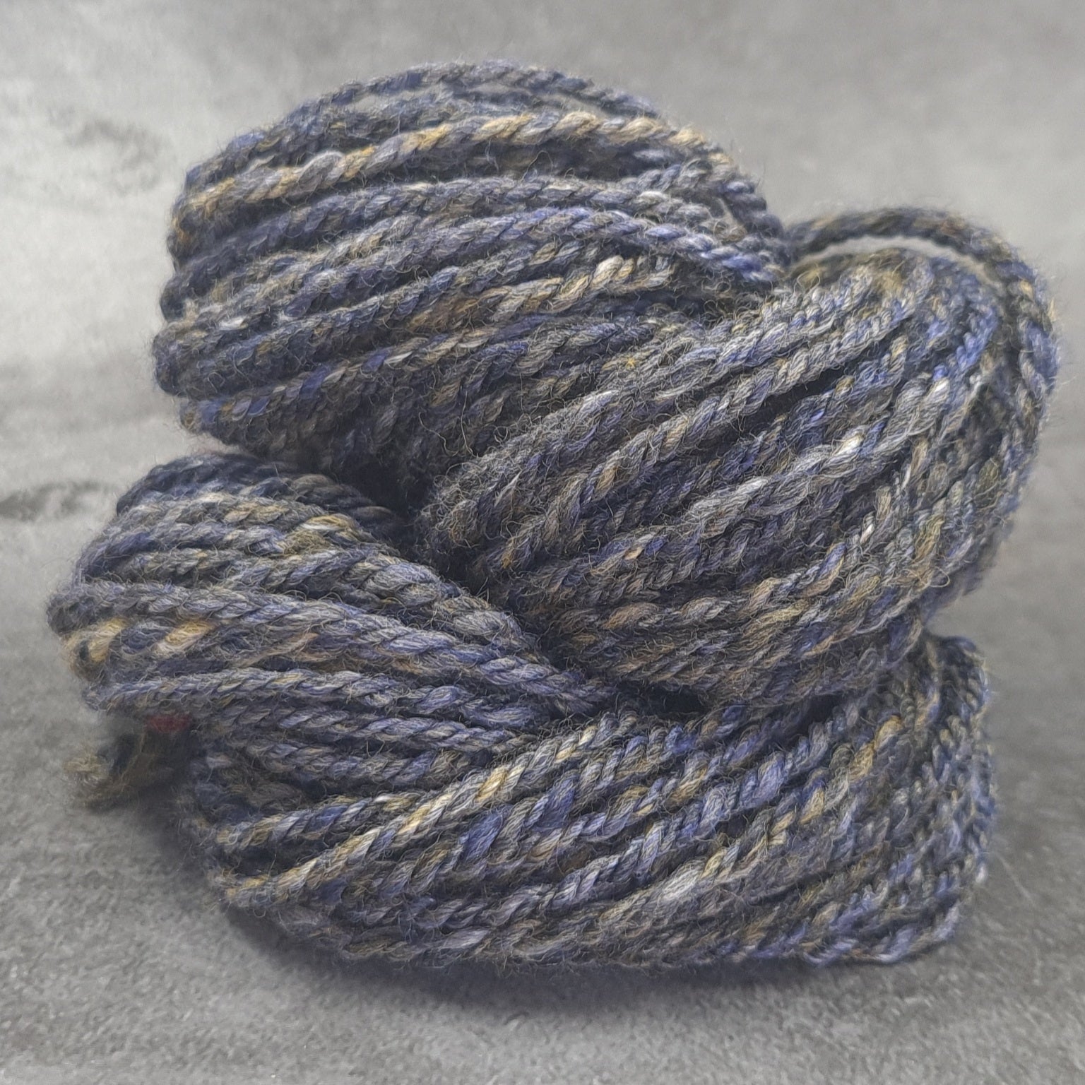 Dark Denim, 26g 37m (40 yds), 10 wpi Purpley-denim blue with dark mustard blended with the dark alpaca and touches of white silk