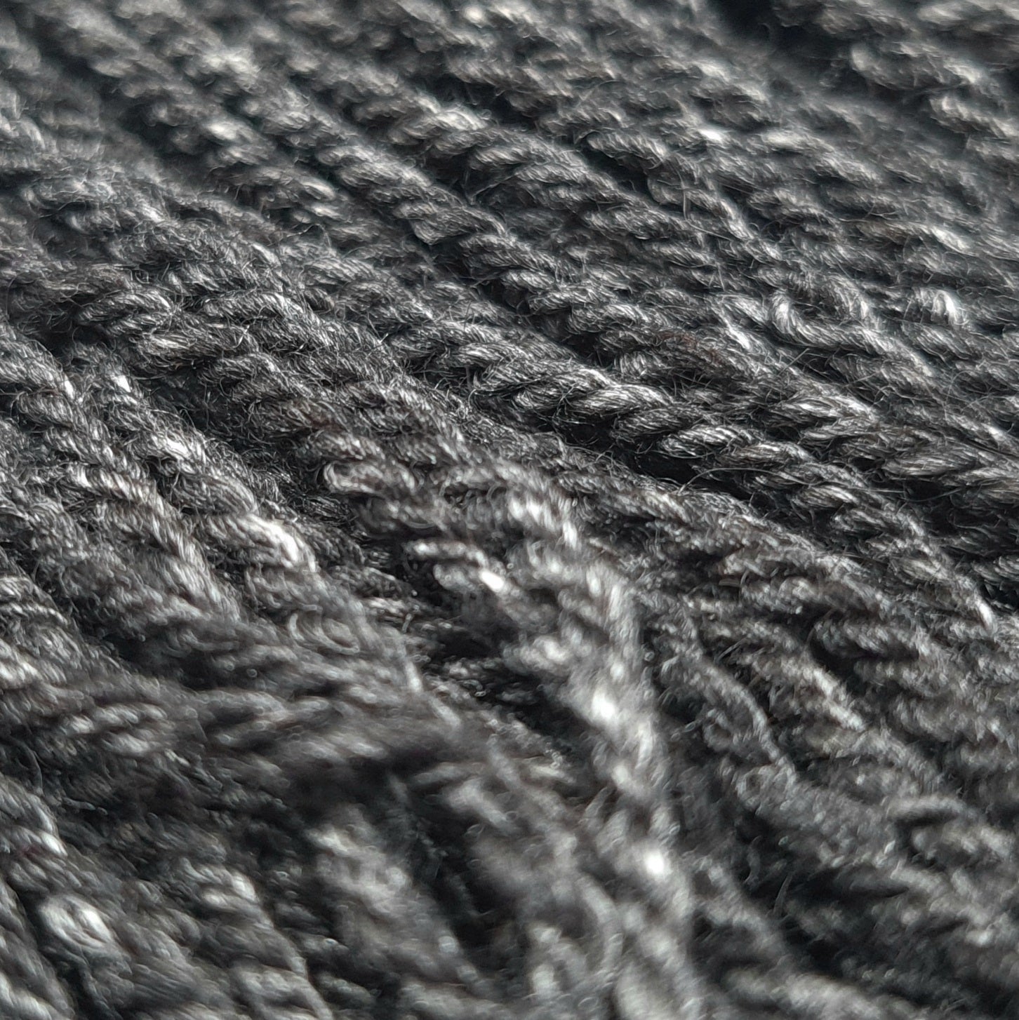 Mini skeins of worsted/light aran weight handspun yarn, 40% merino wool, 40% alpaca & 20% mulberry silk. The addition of white mulberry silk to the dark merino and alpaca makes this a dark grey yarn with loads of interesting depth and texture.