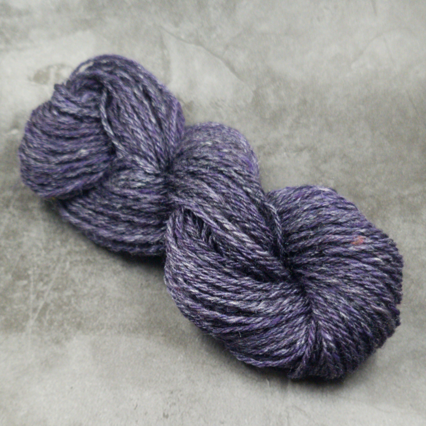 Aubergine Purple, 22g, 52m (57 yds), 12wpi Viewed from a distance this yarn is aubergine purple. Get up close and personal with it and you'll find shades of purple and lilac spun together with bleached white tussah silk.