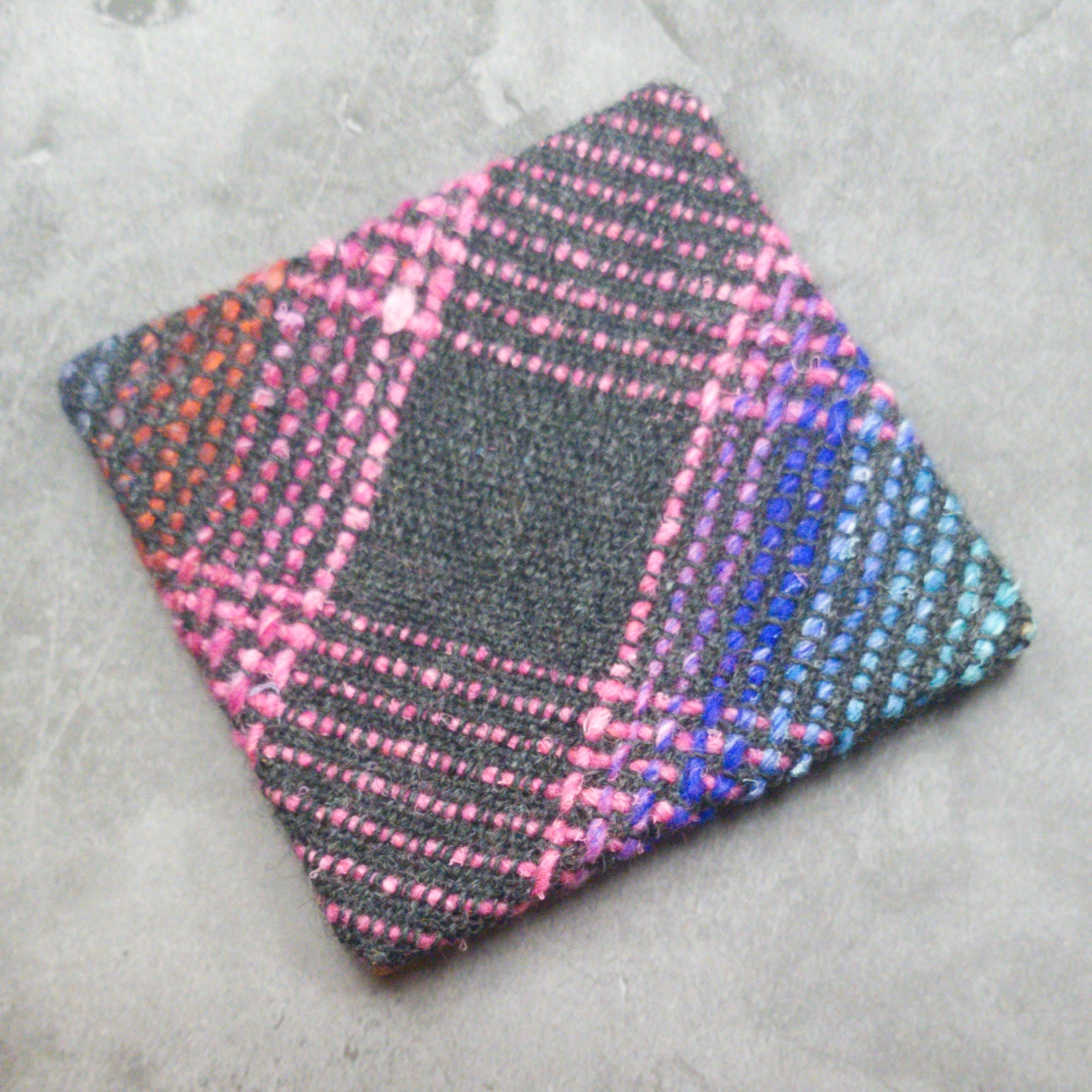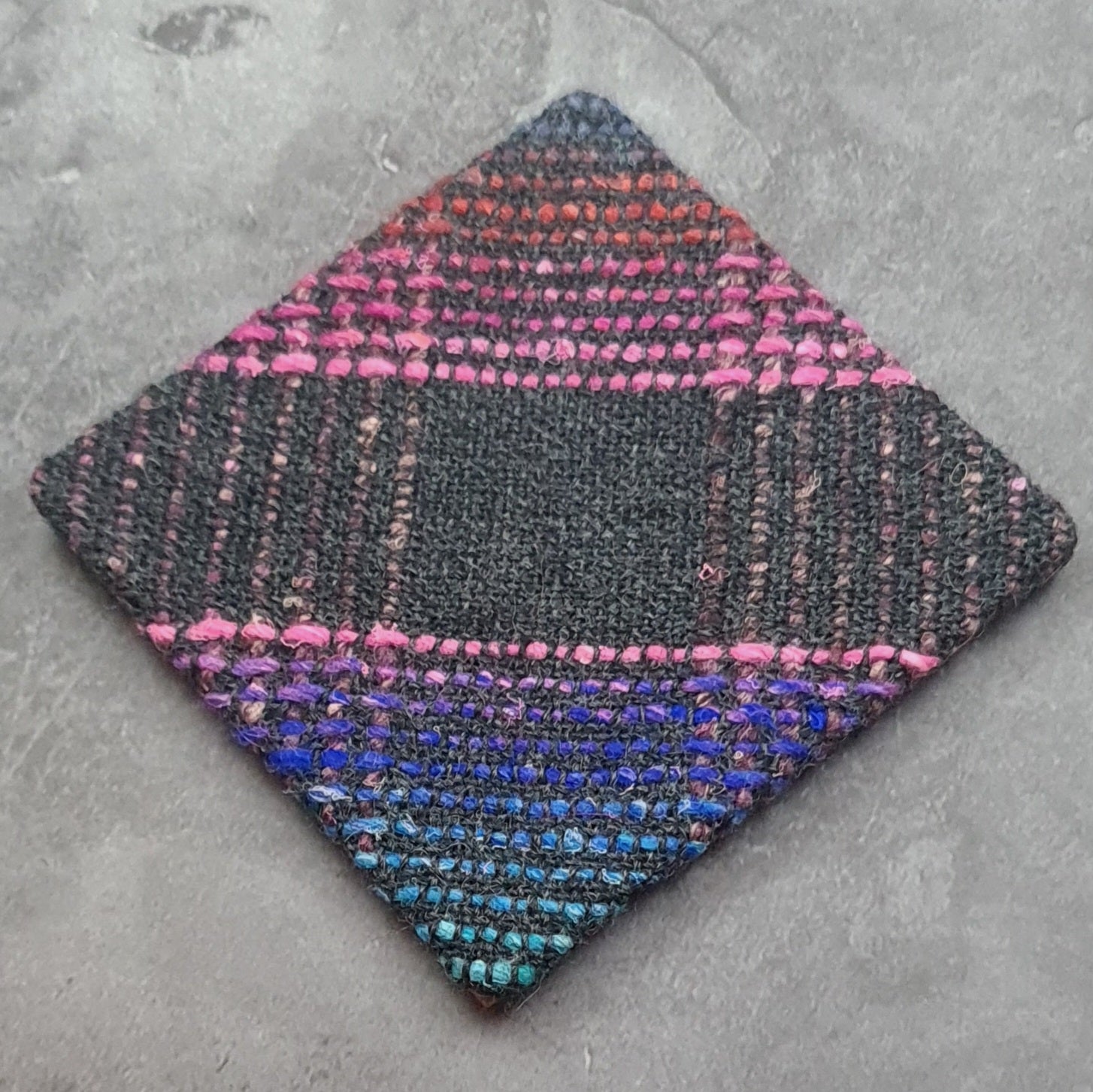 You might be forgiven for thinking that handwoven fabric is just for scarves but it is cloth and, just like any other cloth, it can be made into many things. Here I've used my handwoven fabric to create cork backed coasters. Each one features a unique piece of fabric but I've grouped them together in 'families' if you're looking for sets.