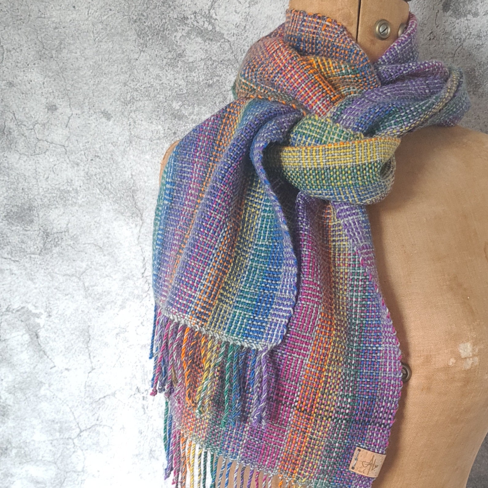Stay cozy and stylish with my Handwoven Unisex Scarf! Featuring a subtle checked pattern in grey and rainbow coloured yarn, this scarf is perfect for any occasion. Made with 75% wool and 25% polyamide, it's both soft and durable. And at 176cm long, it's the ideal size for both men and women.