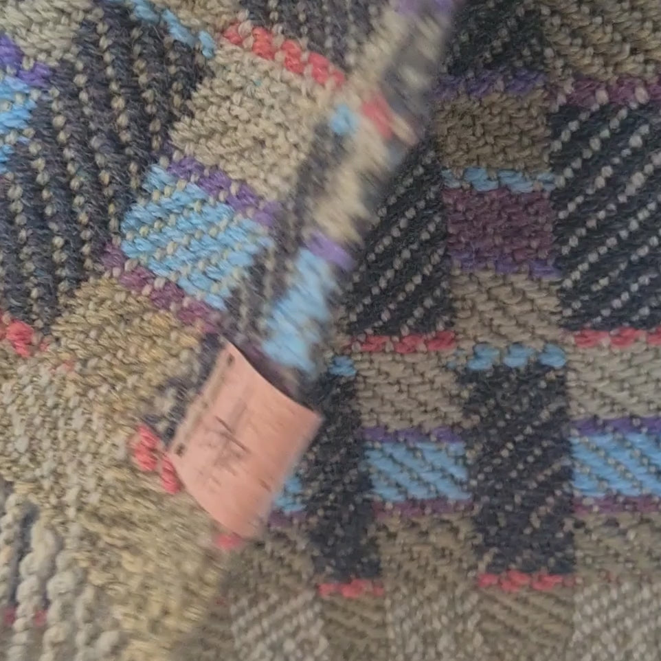 Woven on my pre-loved Harris table loom this scarf has 4 shades of olive in the pure merino warp and 2 in the main body of the weft. The double faced details at either end are woven using another soft wool breed - Corriedale. These sections have stripes on either side and so are thicker than the body of the scarf. The scarf is 24cm wide and 190cm long, including a 5cm fringe at either end.